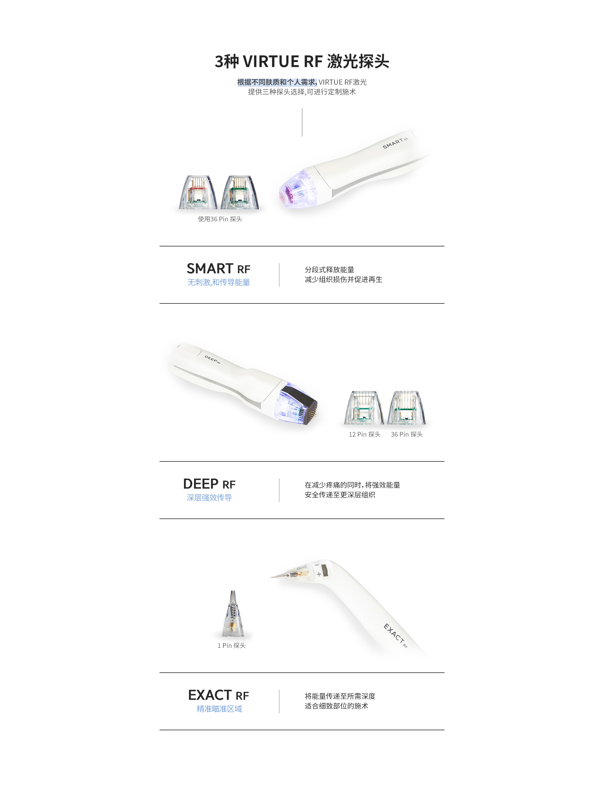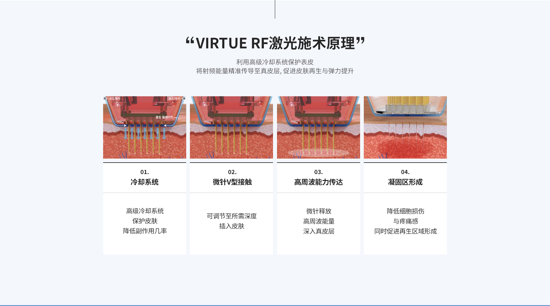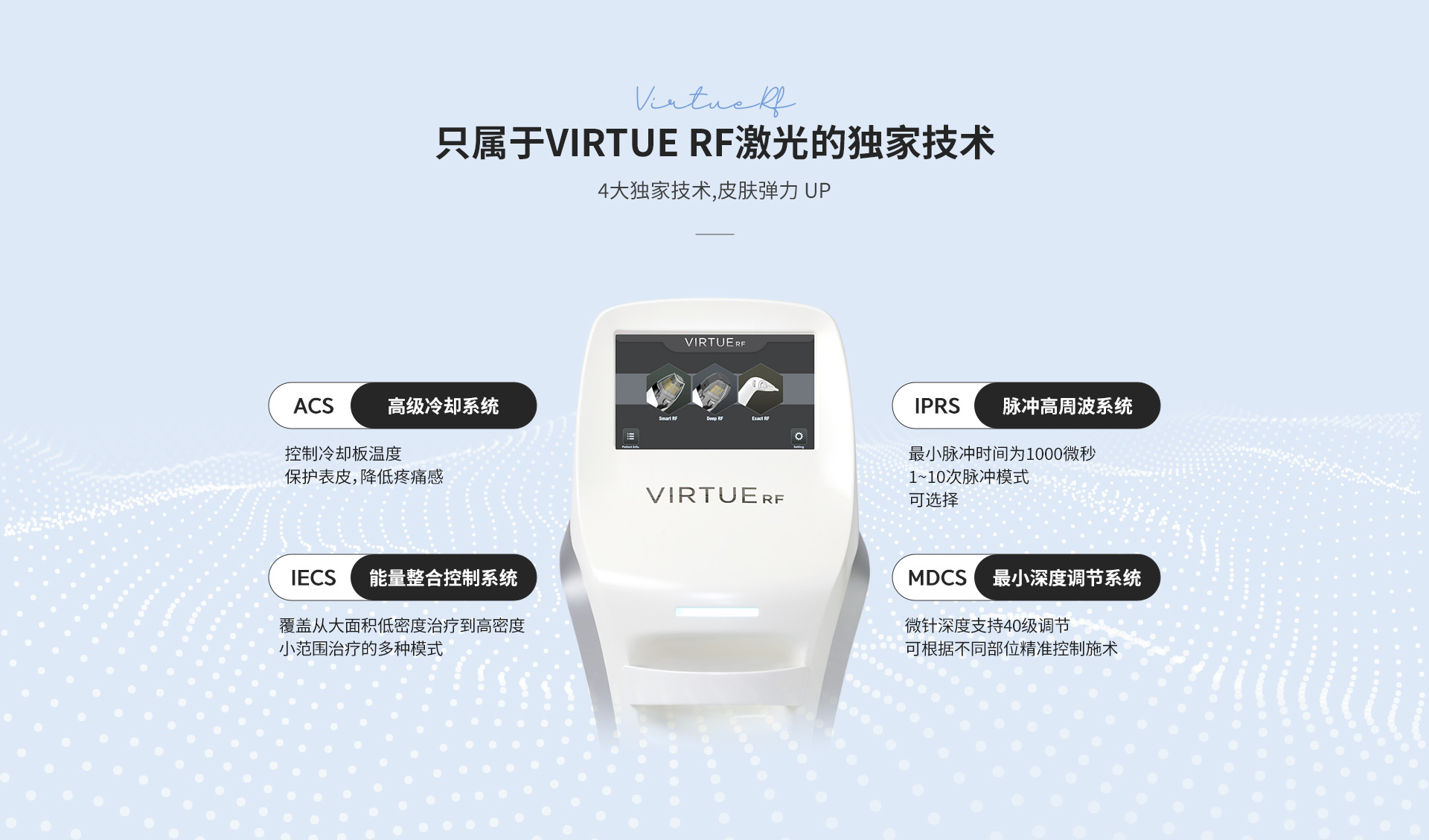 黄金微针(Virtue RF)是结合微针和射频能量的治疗,能够促进肌肤再生、增加弹力并带来提拉效果的项目